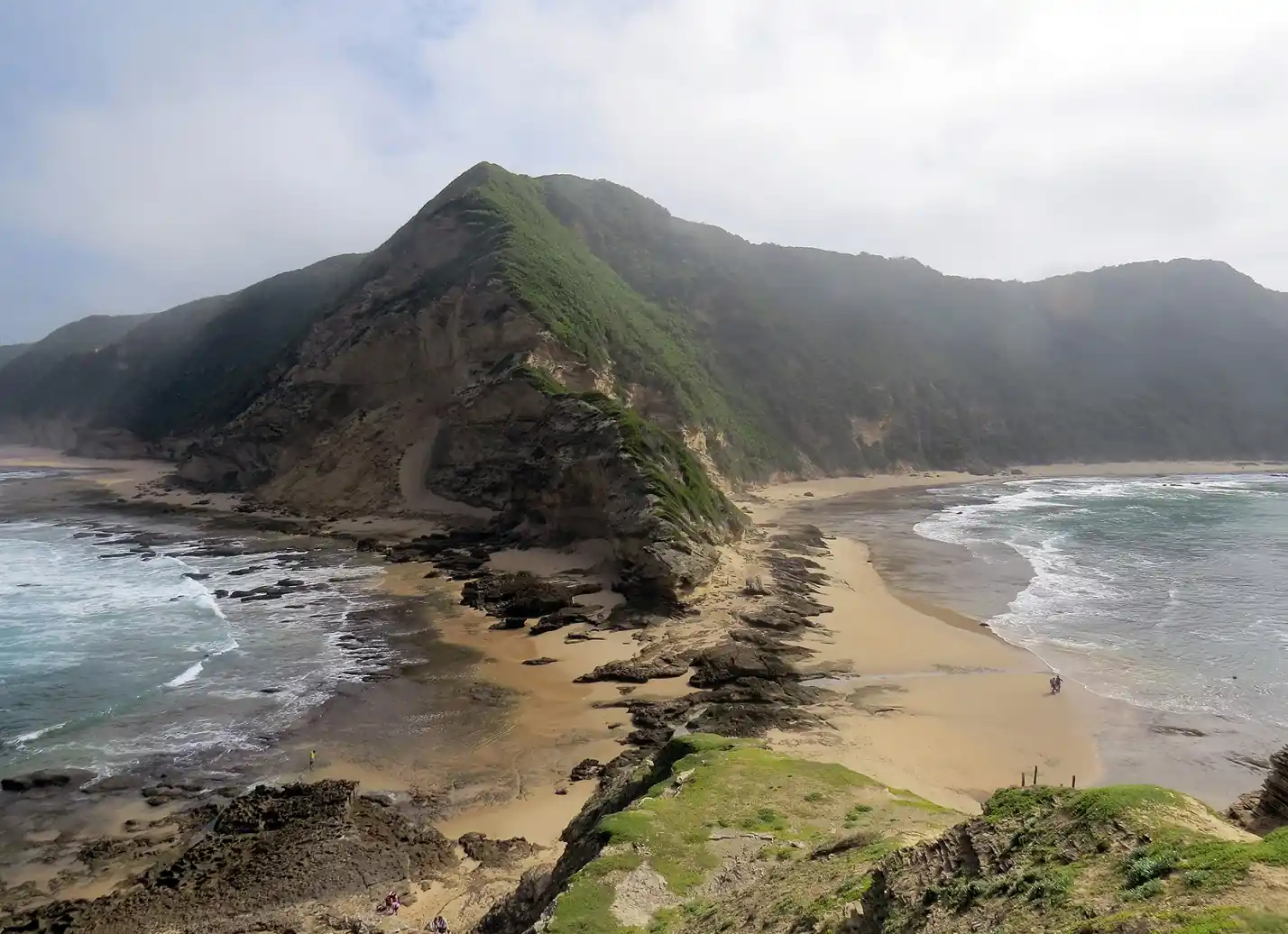 Travel just under an hour to Gericke’s Point in Sedgefield, a dramatic sandstone headland known as Lion Rock. The walk is a gentle 4 km return route along the shoreline, best timed for spring low tide, when the rock pools reveal bright anemones, starfish, nudibranchs, Cape rock crabs and occasionally octopus. The clarity and marine life make it ideal for slow snorkelling and tidal exploration.