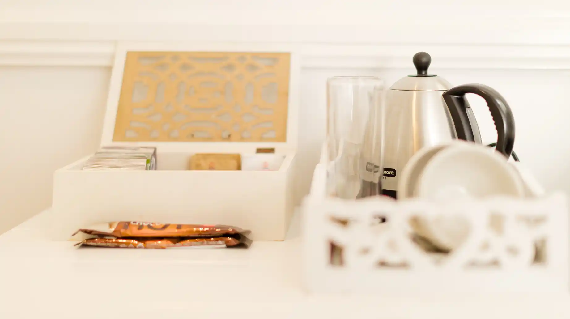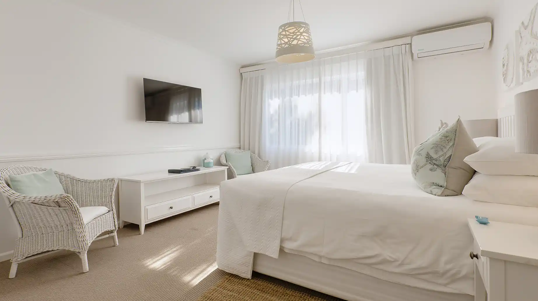 With king or twin beds and electric blankets, the suite includes an en-suite bathroom with shower. Air-conditioning, Charlotte Rhys luxury bath products, a minibar on request, and a coffee and tea station ensure every stay is comfortable and effortless.