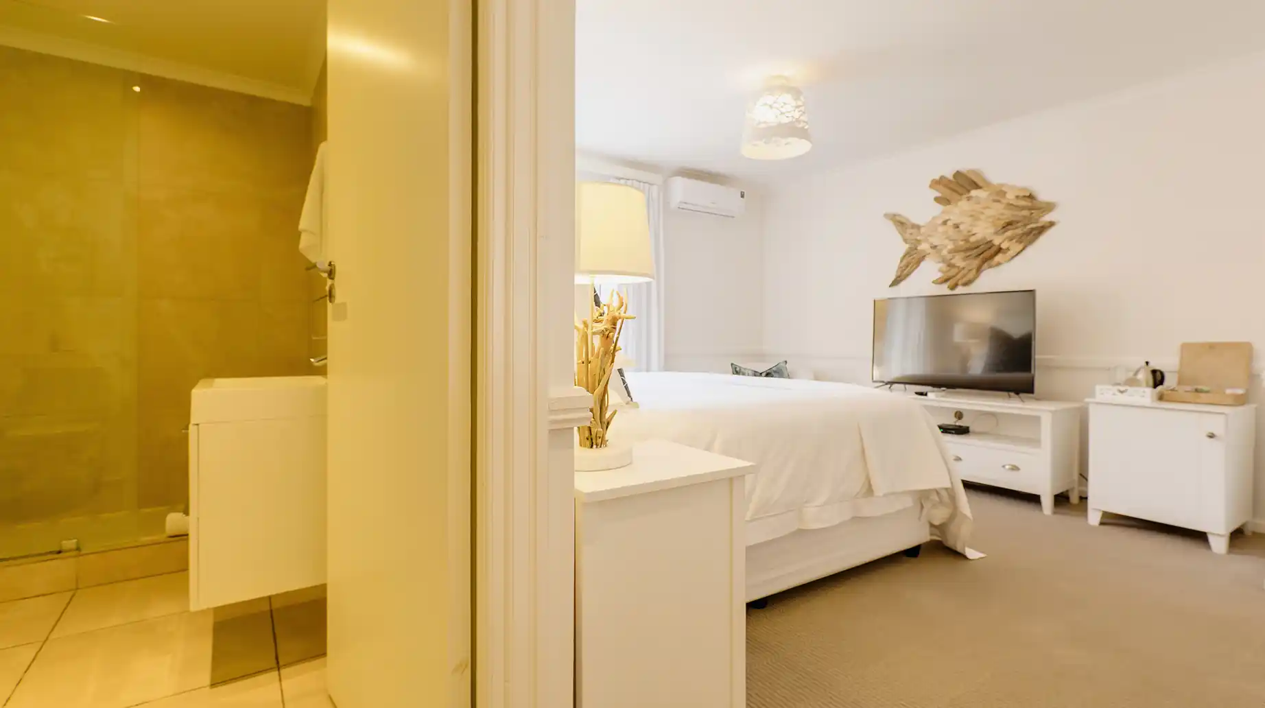 Bathed in natural light, the Milkwood Suite opens onto a spacious balcony with sweeping views of the lagoon and Leisure Isle. Elegant and thoughtfully appointed, it is a space to linger, unwind and savour the calm beauty of your surroundings. Every detail is designed to make your stay relaxed and effortless.