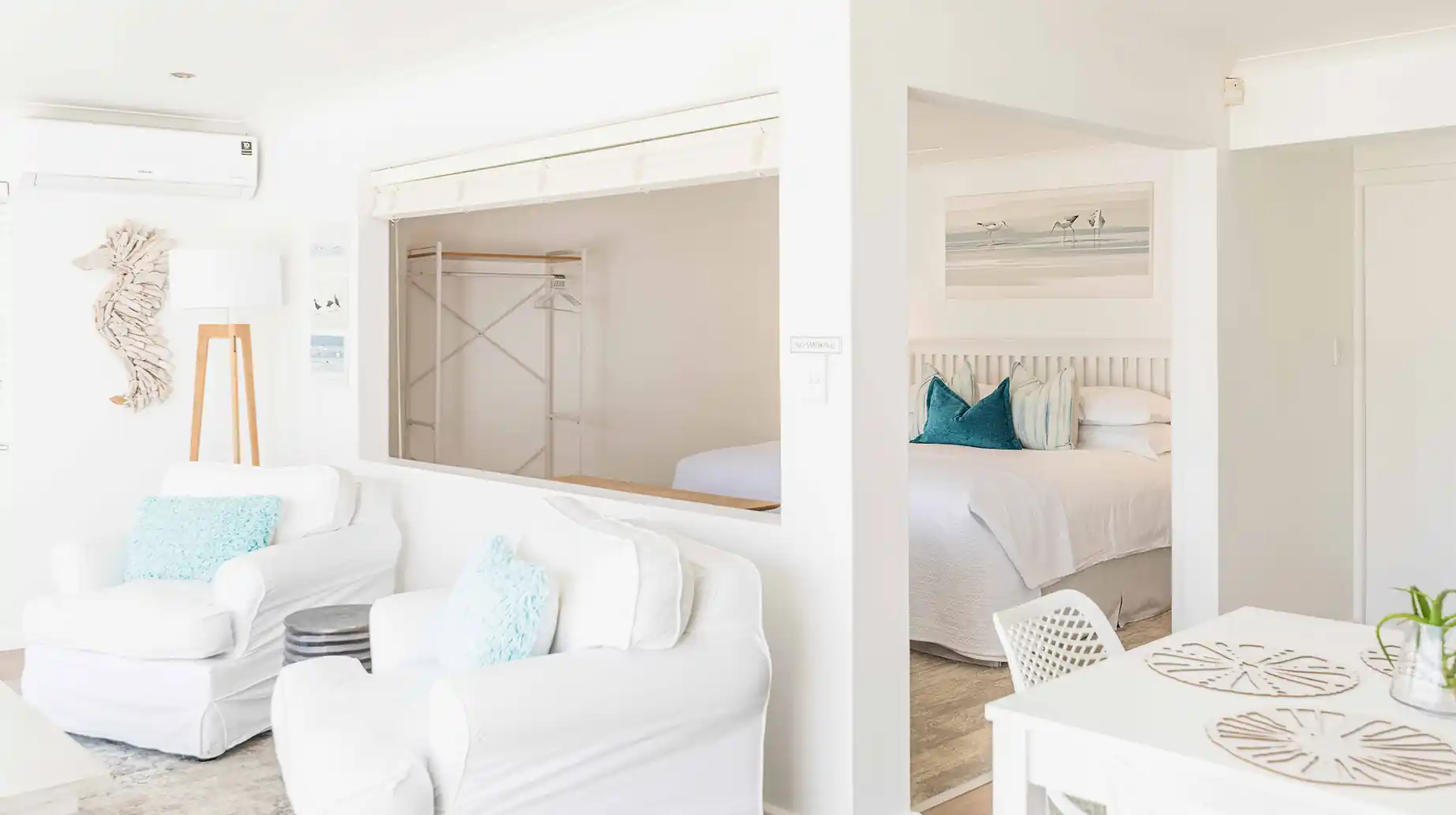 Spacious, serene and thoughtfully designed, the Oystercatcher Suite is perfect for couples seeking a tranquil retreat. Located on the ground floor, it offers direct access to a private patio with loungers and umbrella, all with uninterrupted lagoon views. A welcoming, elegant space where comfort and privacy come naturally.