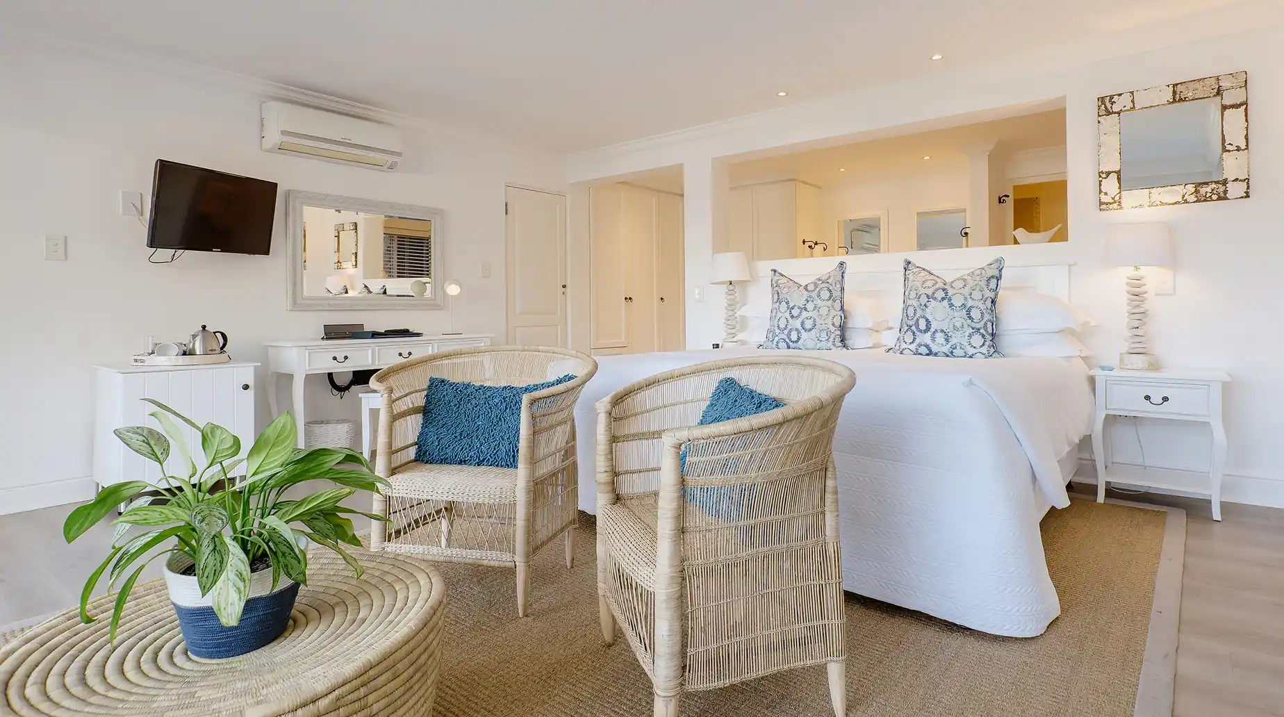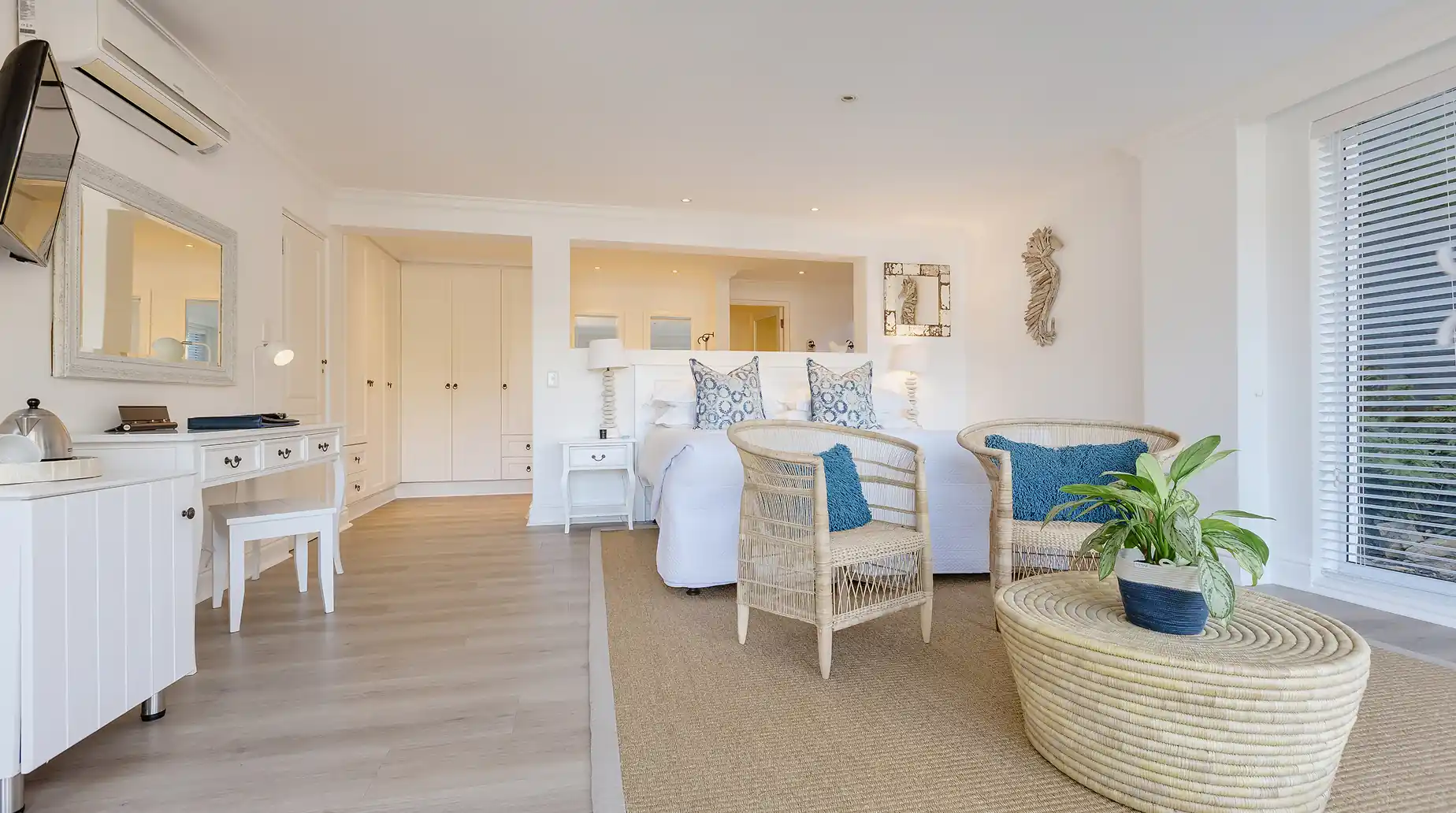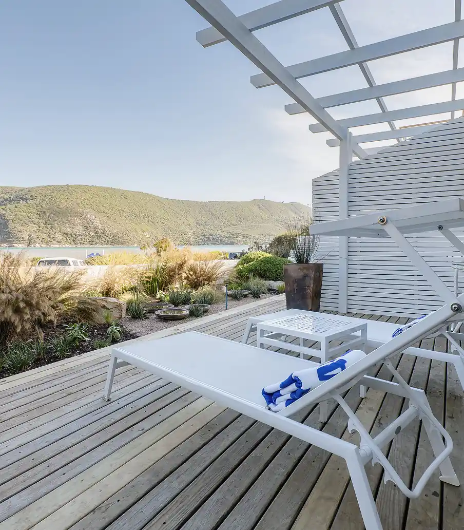 Spacious, light-filled and beautifully appointed, the Starfish Suite is ideal for honeymoons, anniversaries or a special escape. Located on the ground floor, it opens onto a private deck with loungers and sweeping views of the lagoon and Knysna Heads. A calm, elegant space where time slows and comfort comes easily.